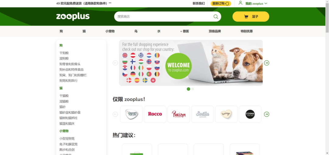 1999年,Zooplus创始人看到了互联网的潜力和宠物用品市场的机遇,在德国慕尼黑创建了一个在线宠物用品商店,在成立之初,Zooplus获得了风险投资的支持,这为公司的早期发展提供了资金保障。Zooplus以其独特的商业模式和庞大的市场潜力,在2003年营收超过了1000万欧元。随后,公司开始向周边国家扩展,2006年Zooplus打通欧洲市场进入英国、卢森堡,并推出了跨欧洲语言版本的网站www.zooplus.com。2008年,Zooplus在德国法兰克福证券交易所上市,随着资金和资源的快速涌入,公司继续扩大市场份额,进入更多欧洲国家,并在2009年被纳入德国SDAX股票市场指数。为了满足不同市场的需求,Zooplus还推出了自有品牌"bitiba",bitiba是以折扣为主的精选品类,该品牌一经推广就在14个国家上线,这大大增强了公司的市场竞争力。
