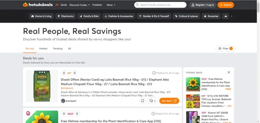 Hotukdeals,英国最大的交易分享社区,2004 年由 Paul Nikkel 和 Jen Nikkel创立,用户可以在这里发布和分享各种商品和服务的优惠信息。Hotukdeals 拥有一个庞大的活跃用户社区,他们提交交易并为其他用户寻找交易。用户可以在 Hotukdeals 上发布优惠、折扣码、优惠券以及购物小贴士,Hotukdeals 的社区氛围鼓励用户之间的互动,用户可以对帖子进行投票、评论和分享。这些帖子会根据热度和用户的互动程度进行排序。网站对发帖有一定的规则,要求帖子内容真实有效,禁止垃圾信息和自我推销。这样用户就可以就交易、商家、产品和服务获得真实有效的建议。Hotukdeals作为英国最大的交易分享社区之一,对于寻找优惠信息的消费者和希望推广产品的商家来说都是不可忽视的平台。
