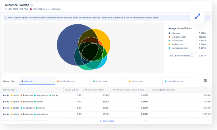 使用“受众重叠”这样的工具,看看你的受众和你的竞争对手之间有多少交叉。将这一点纳入你的竞争策略。
