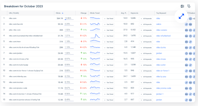 对于数字——以及所有其他关键词——背后的内容,请访问有机网页。在这里,您可以全面了解页面的性能,详细信息包括: