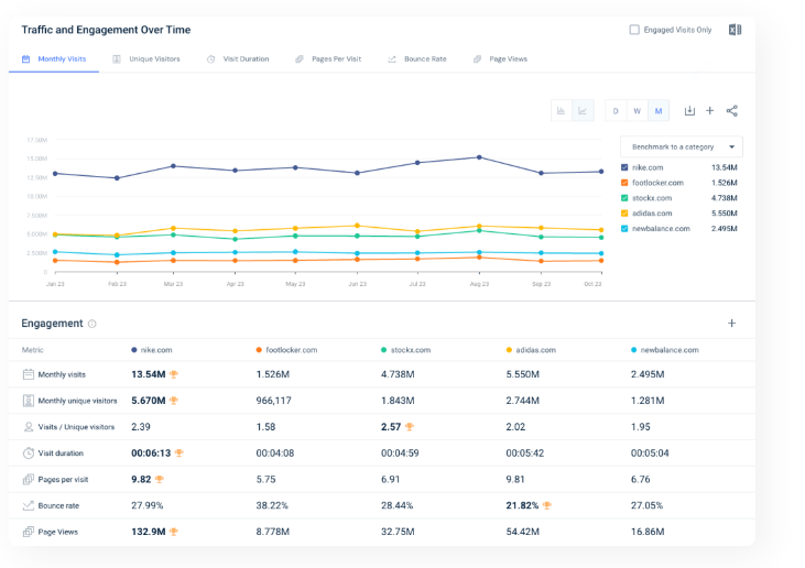 Similarweb拥有您需要的所有数据、见解和工具,以实现广泛、有效和可操作的目标: